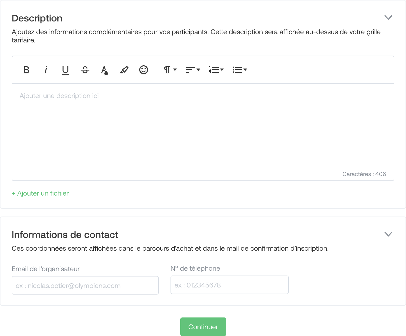 This field allows you to provide any useful information for participants to understand the registration process. You can also add any type of file.