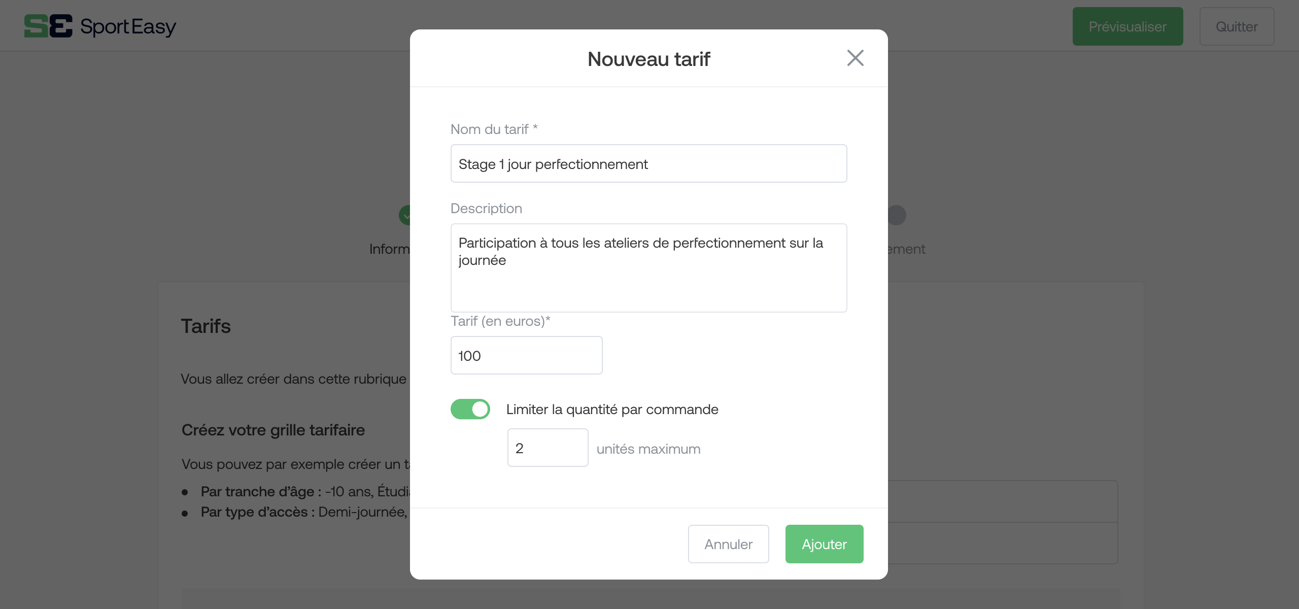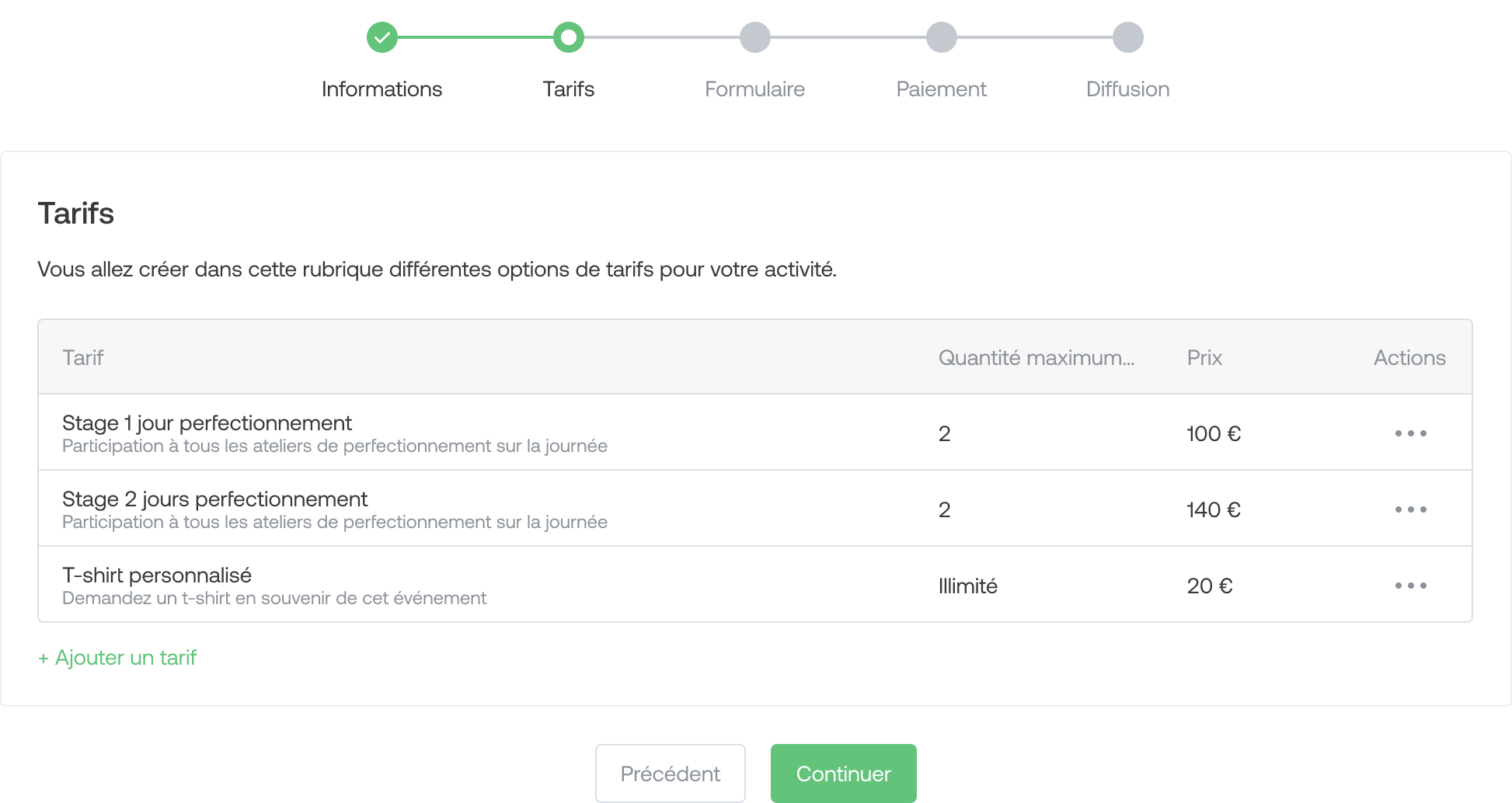 Set the different prices for your activity: