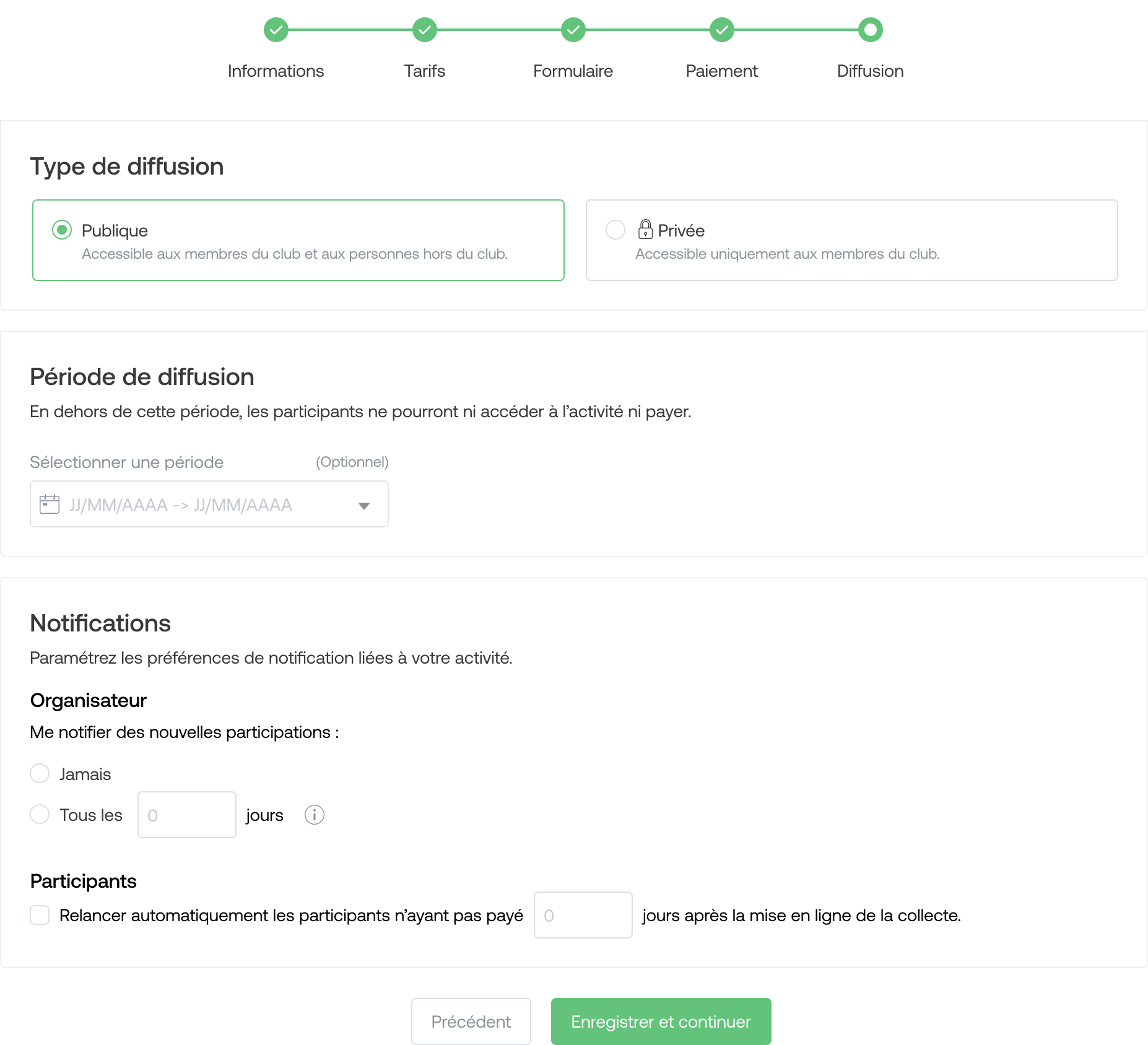 Organiser: if you enable these notifications, you will receive a reminder as soon as at least one person has participated in the collection within the indicated number of days.