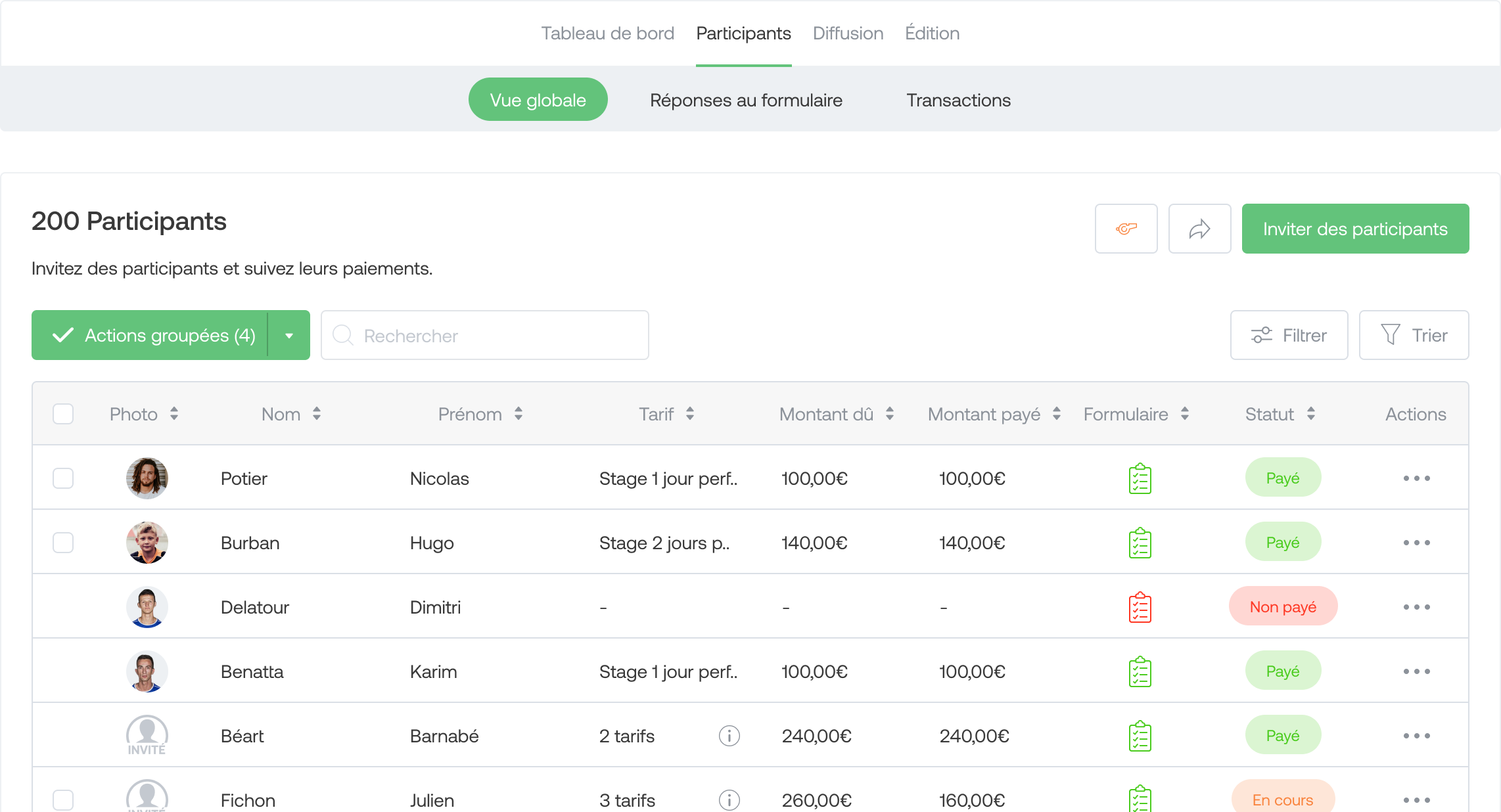From this view, track the payment status of your participants as well as the form completion status.