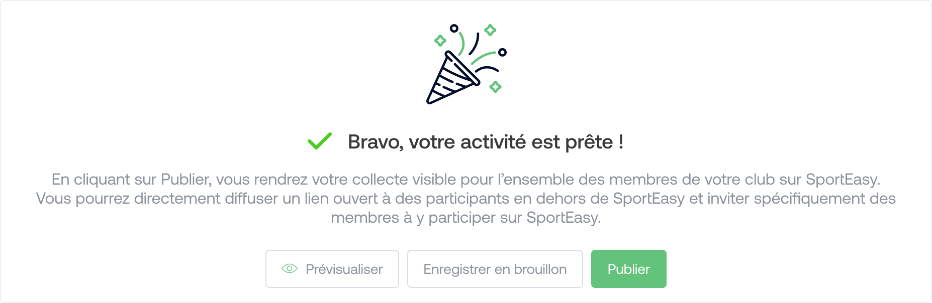 Depending on the distribution settings chosen previously, you can choose whether or not to publish your activity, invite members, or distribute it via a link.